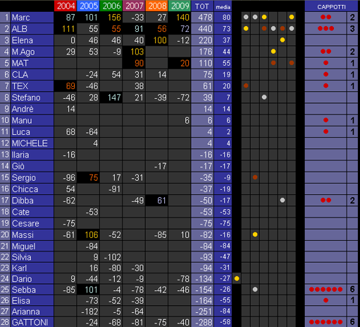 Direi che quest’anno non c’è stata molta storia. Marcello ha vinto con largo margine, ben 140 punti, la seconda vittoria più importante dopo quella del 2006, e torna sul podio dopo 2 anni di assenza.